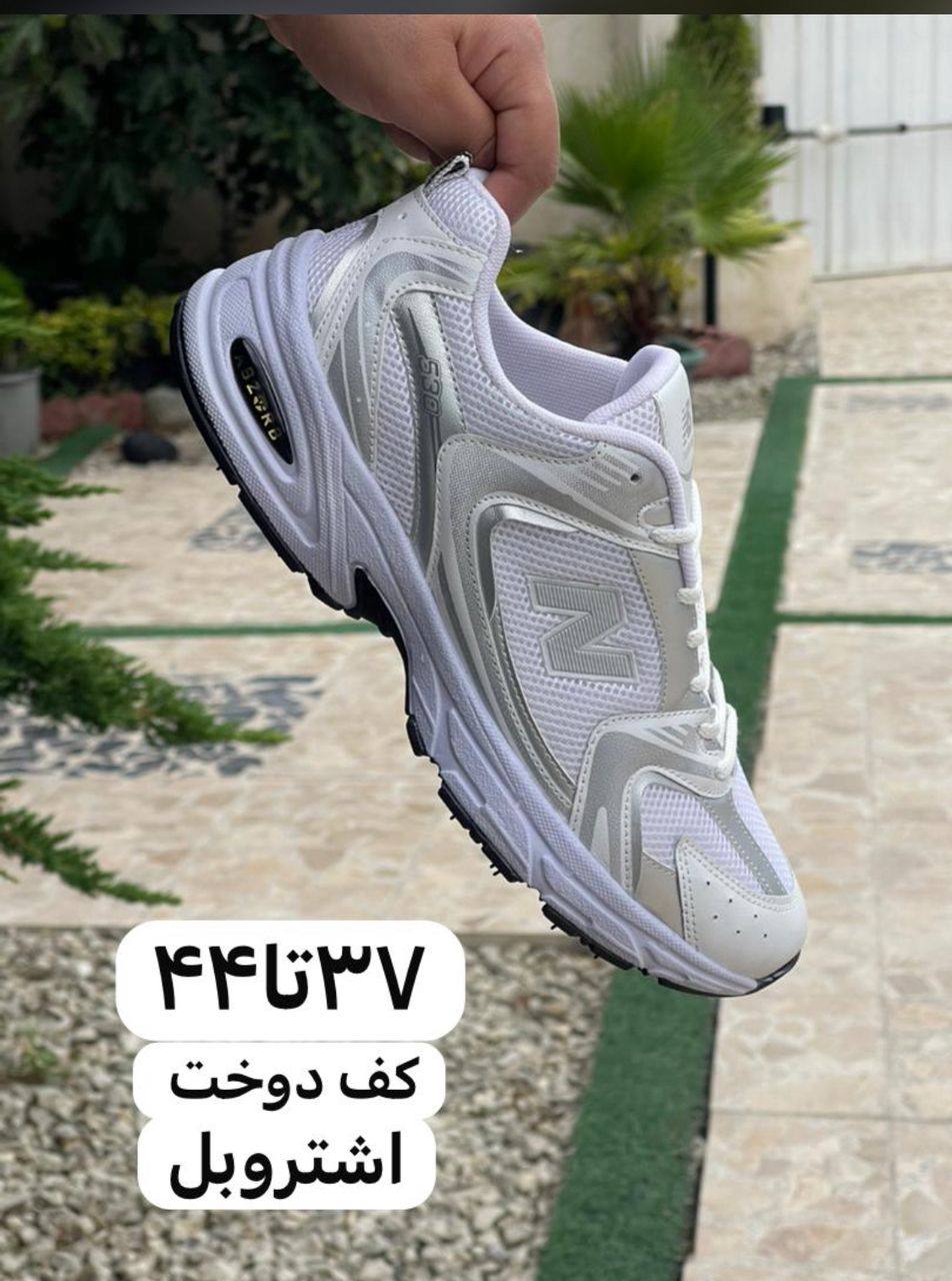 کفش نیوبالانس میانه - مناسب خانم ها و آقا پسرها رنگ سفید نقره ای زیره نرم وراحت مناسب پیاده روی و ورزش و کارهای روز مره سایز بندی 37 تا 40